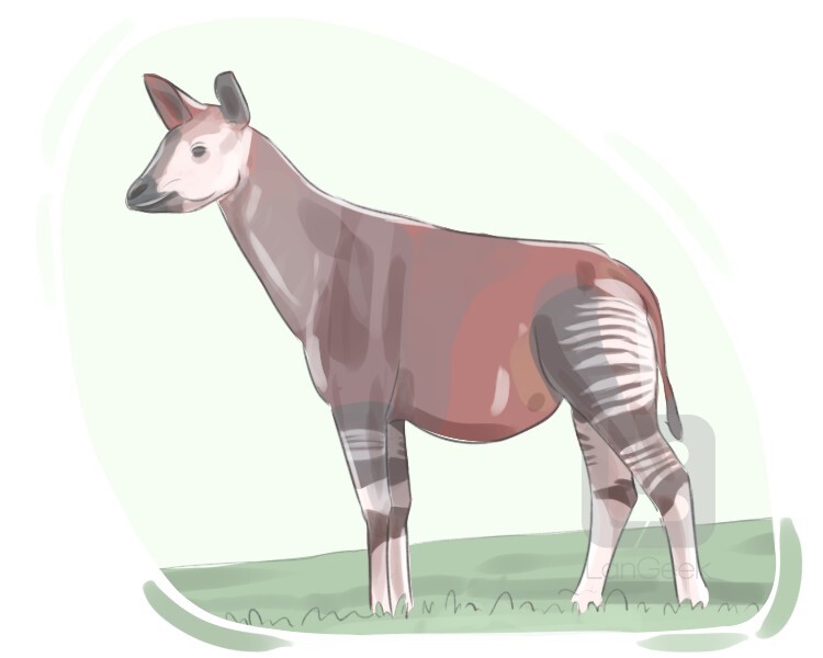 a quadruped mammal related to the giraffe family that has black and white stripes on the legs and a smaller neck, found chiefly in Congo rainforests
